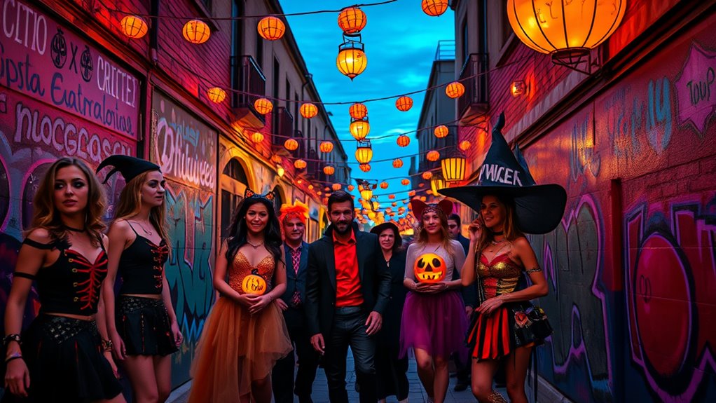 In Argentina, Halloween has become a vibrant celebration among urban youth, blending traditional spooky themes with modern trends. As you scroll through social media or walk the city streets, you’ll notice how costume trends have evolved from simple masks to elaborate, creative outfits. Now, dressing up isn’t just about scary ghosts or witches; it’s about making a statement. You might see your friends donning superhero costumes, pop culture icons, or even quirky, humorous ensembles that stand out. The focus is on originality, blending classic horror elements with fresh, innovative ideas. This shift reflects how Halloween has become a canvas for self-expression among young people, who thrive on standing out and showcasing their creativity.