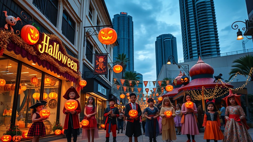 In Singapore, Halloween comes alive with lively costume parades, haunted houses, and themed attractions across the city. You’ll find celebrations blending traditional folklore with modern horror, featuring culturally inspired ghost stories and creative costumes. From immersive events to lively street festivals, the city creates a festive, multicultural atmosphere that encourages everyone to participate. To discover more about the exciting ways Singapore celebrates Halloween and the unique cultural influences, keep exploring what’s happening around you.
