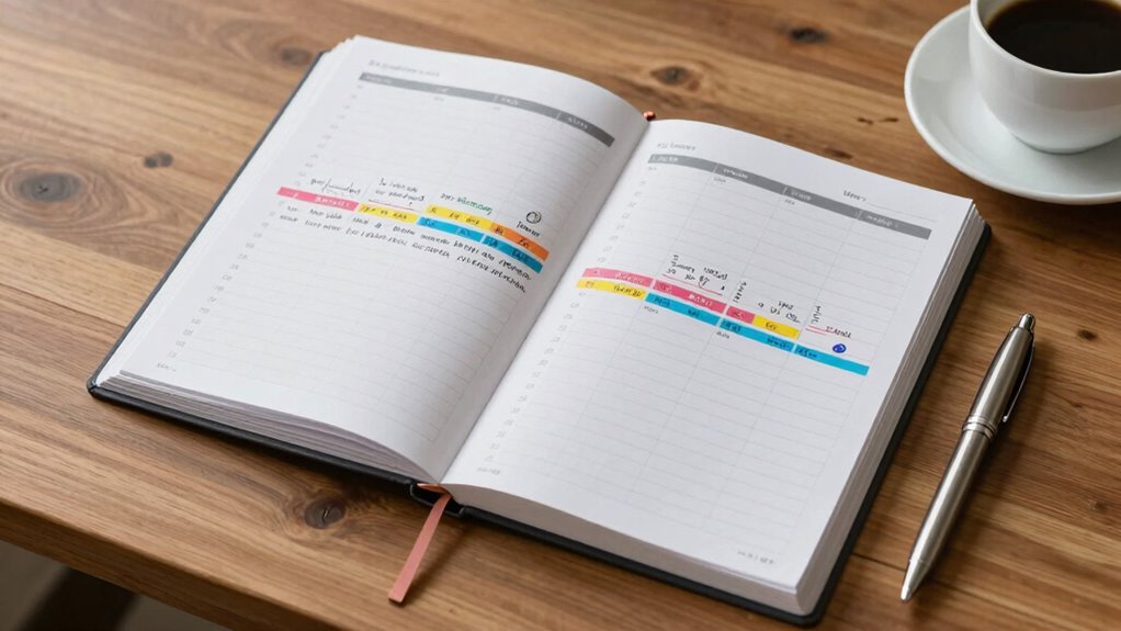 A critical aspect of creating this timeline is establishing solid cash flow strategies early on. You want to ensure your income is optimized and your expenses are manageable. Consider how much money is coming in each month and identify ways to increase cash flow if needed—such as side gigs or freelance work. Simultaneously, develop expense tracking techniques to monitor where every dollar goes. By keeping detailed records of your spending, you can spot patterns, eliminate unnecessary costs, and free up funds to accelerate your progress toward your goals. These techniques provide real-time insights, helping you stay on track and avoid surprises that could derail your timeline.