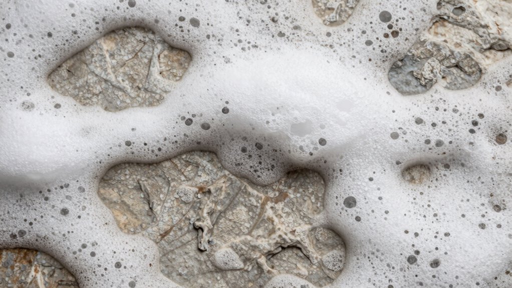 The aging effect lasts several years if you seal the foam properly, but durability depends on foam type compatibility and environmental conditions. UV exposure, moisture, and handling can shorten the aging look’s lifespan. To maximize durability, use a weather-resistant sealant suitable for your foam type, and regularly maintain the surface. Proper sealing and maintenance guarantee your aged stone appearance stays vibrant longer.