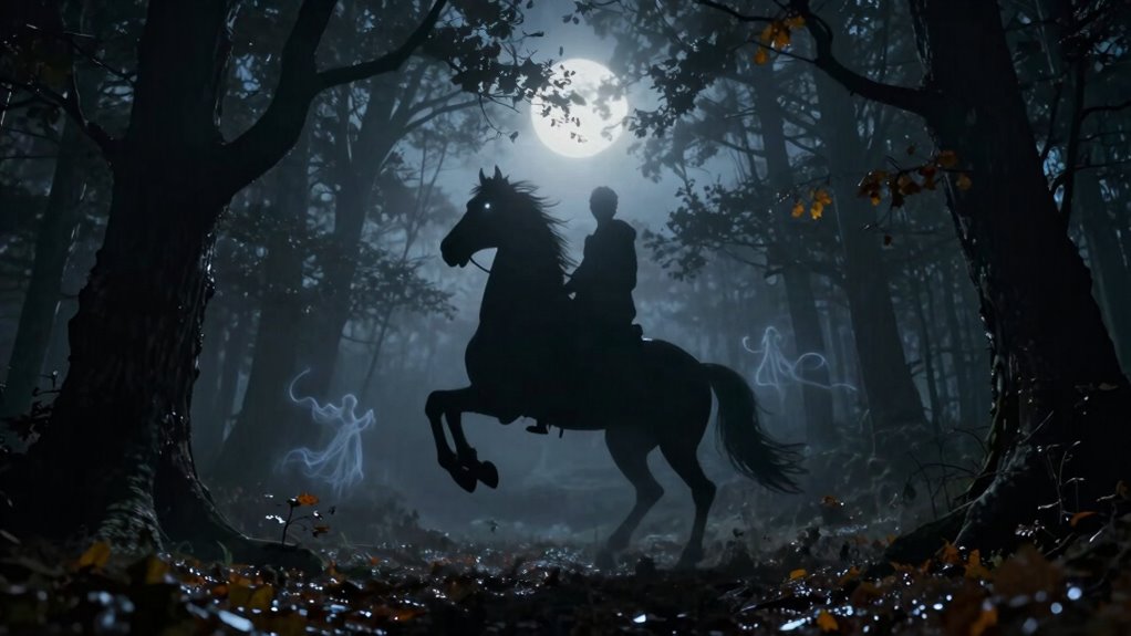 The Legend of the Headless Horseman has captivated audiences for generations with its eerie tale of a ghostly rider who haunts the quiet countryside. This story is deeply rooted in horseman folklore, a rich tapestry of legends that feature spectral sightings and ghostly riders. These tales often describe a rider without a head, moving through the night on a spectral steed, searching for something lost or seeking revenge. As you explore the history of this legend, you’ll find that many versions exist across different cultures, each adding its own twist to the story. The consistent theme, however, is the unsettling image of a headless figure mounted on a ghostly horse, creating a chilling image that persists in local stories and ghost lore.