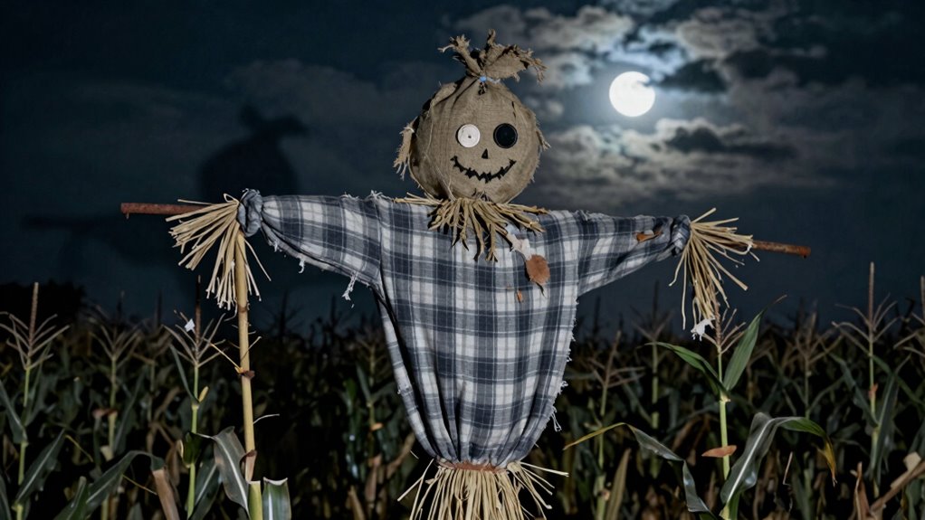 In essence, scarecrows symbolize a complex blend of protection and terror. They’re cultural icons rooted in ancient beliefs, embodying both the hope of safeguarding crops and the fear of haunted legends that remind us of the supernatural forces lurking just beyond our perception. Whether viewed as benevolent guardians or haunted remnants of folklore, scarecrows continue to evoke fascination and unease, standing as silent sentinels at the intersection of tradition and superstition.