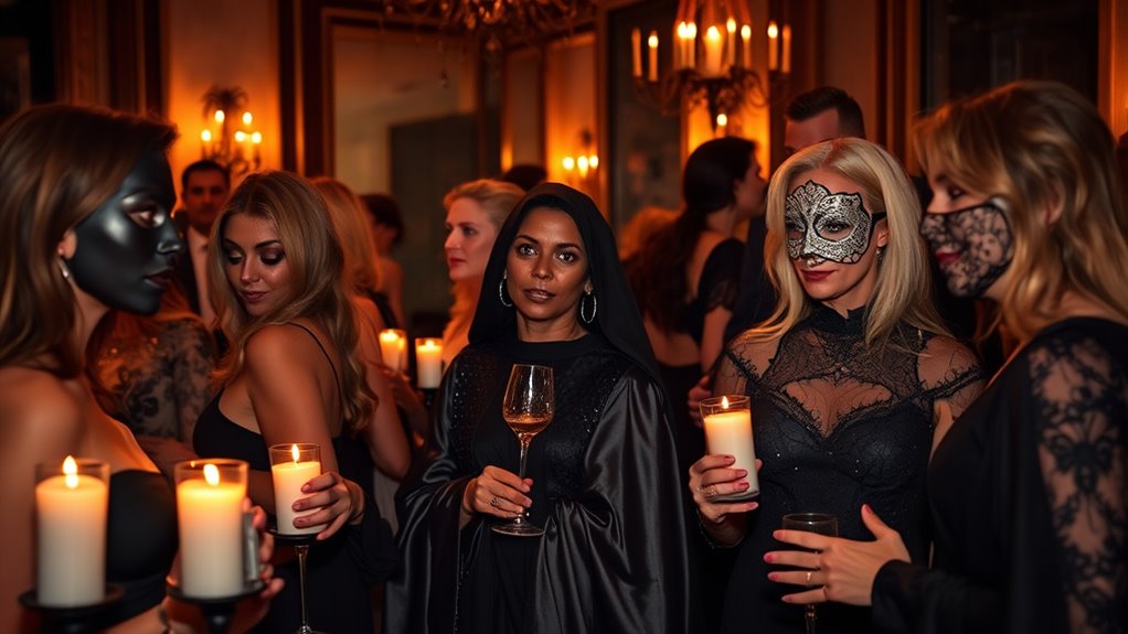 To celebrate adult Halloween with style and fun, focus on elegant costumes that blend sophistication with a touch of whimsy. Think vintage, minimalist, or literary-inspired outfits paired with glamorous accessories like statement jewelry and ornate hairpieces. Enhance your look with refined makeup and classy decorations, such as vintage candleholders and gothic centerpieces. Host a themed party with mood lighting and curated drinks. Keep it fun yet refined—if you want tips on perfecting this balance, there’s plenty more to explore.