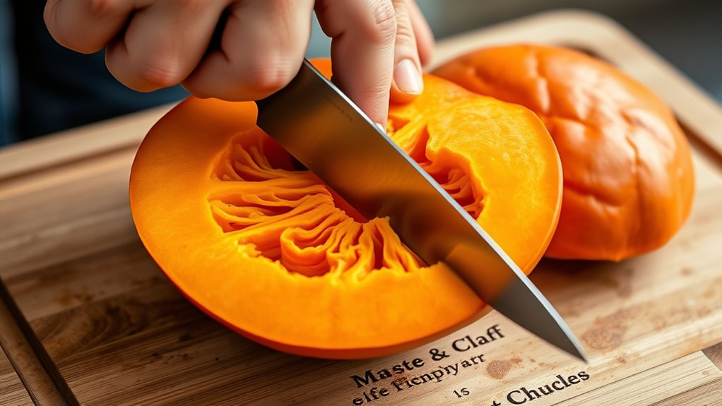 You can tell if a pumpkin is too soft or hard to cut safely by feeling its texture. If it’s very soft or mushy, it’s likely too ripe and may slip while cutting, risking injury. If it feels very hard and firm, it’s better to warm it slightly or use a sawing motion to prevent accidents. Always prioritize cutting safety by evaluating the pumpkin’s texture before starting your prep.