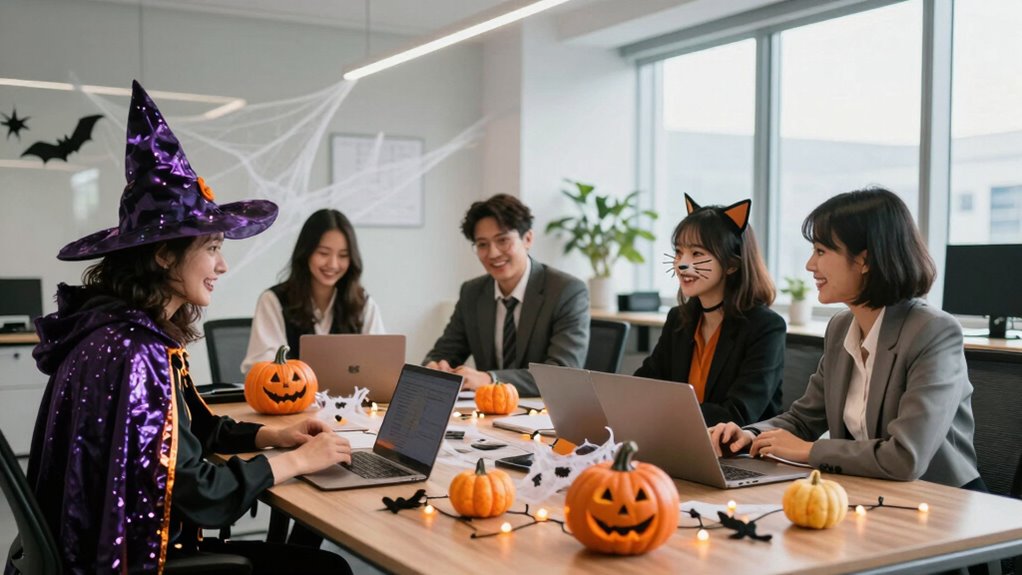 You need to navigate the costume jungle carefully—dress code restrictions exist, so plan your costume accordingly. Think of costume appropriateness as your shield and sword; it guides you to avoid crossing lines or causing offense. While celebrating Halloween, prioritize your office’s vibe, ensuring your costume’s originality shines without breaking rules. Respect boundaries, keep it fun, and you’ll blend in seamlessly, turning heads for the right reasons.