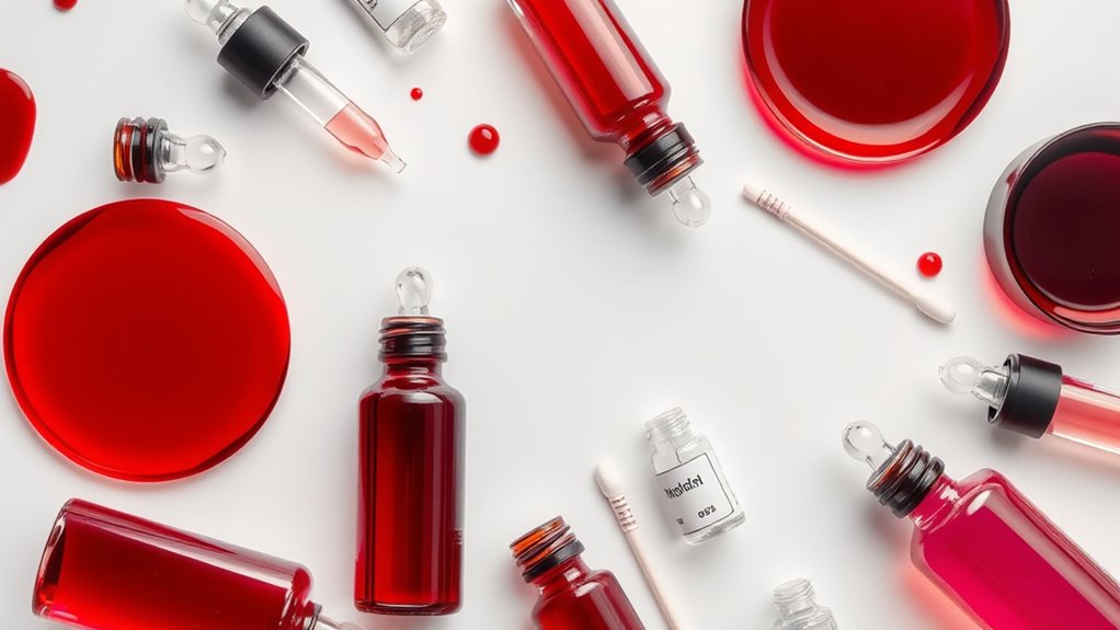 Have you ever considered using a natural hydrogen peroxide solution for blood-related needs? It’s a popular stain removal technique because hydrogen peroxide is effective at breaking down blood proteins. However, hydrogen peroxide safety is essential; always dilute it properly to avoid damaging fabrics or irritating your skin. When using it for stains, test a small hidden area first to ensure it won’t cause discoloration. To apply, pour a small amount directly onto the blood stain, let it bubble for a few seconds, then gently blot or rinse with cold water. This method is quick and efficient, making blood stain removal less intimidating. Just remember, proper stain removal techniques and respecting hydrogen peroxide safety guidelines will help you achieve the best results without harm. Additionally, understanding indoor air quality can help you maintain a safe and healthy environment while performing household chores.
