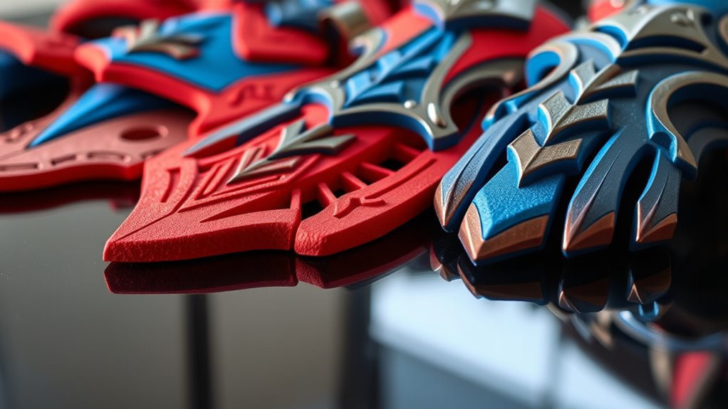 EVA foam is a lightweight, versatile material perfect for making realistic armor and props. It’s easy to cut, shape, and glue, making it popular among cosplay creators. You can choose from different thicknesses and densities depending on your project needs, whether for detailed accessories or sturdy armor. With the right tools and techniques, you’ll learn how to assemble and finish your foam pieces professionally. Keep going, and you’ll discover how to craft impressive and durable creations.