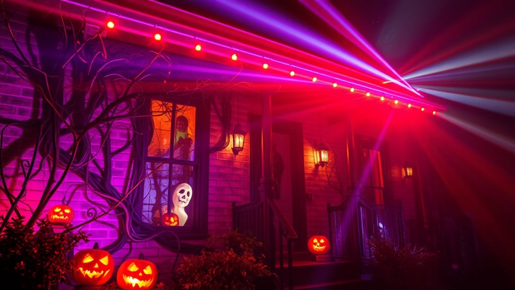 If you’re looking to make your haunted house stand out, I recommend checking out the best COB LED pars like the PAUTIX and MIWISE models, which offer vibrant colors, adjustable brightness, and easy control options like remote and app control. For large or spooky effects, consider stage lights like the Ridgeyard 200W or SHEHDS RGB pars. Continue exploring your options to find the perfect lights that will make your Halloween truly unforgettable.