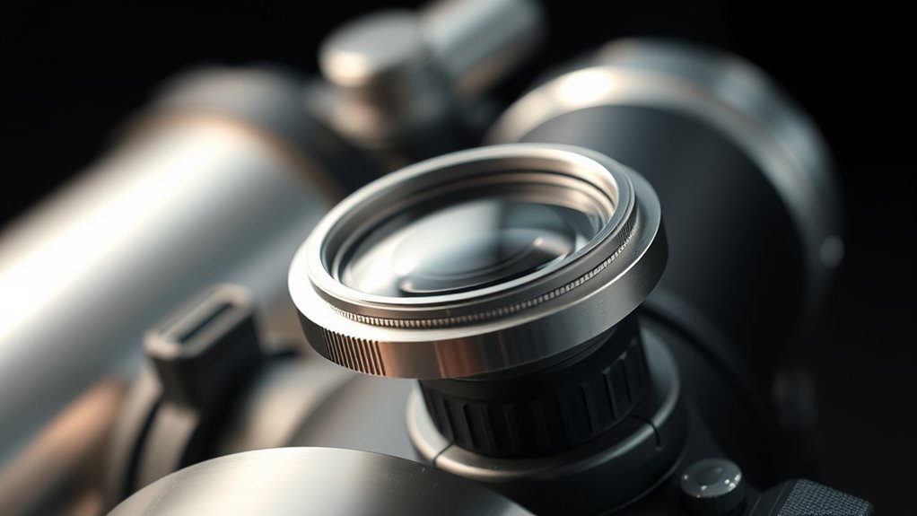 Matching your field flattener to your telescope’s focal ratio is key to capturing sharp, distortion-free images. Most flatteners are calibrated for focal ratios between f/4 and f/8, with many tailored for f/5 to f/7, which strikes a good balance for astrophotography. Using a flattener outside its recommended range can cause increased aberrations or incomplete correction of field curvature, degrading image quality. It’s essential to select a field flattener designed for your specific focal ratio to guarantee ideal performance across the entire image. Some flatteners are adjustable or cover broader ranges, but for the best results, matching the flattener to your refractor’s focal ratio is the safest way to achieve consistently sharp, flat images.