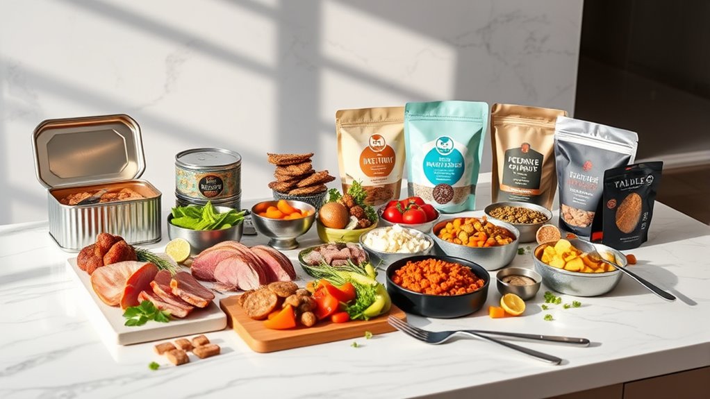 If you’re looking to treat your furry friend to some luxury, I recommend exploring top gourmet pet food brands like Rachael Ray Nutrish, Cesar, Blue Buffalo, Fromm, and Portland Pet Food Company. These brands focus on high-quality ingredients, real meat, wholesome vegetables, and convenient packaging that appeals to both pets and owners. They cater to specific needs like sensitive stomachs or small breeds while promoting health and happiness. Keep exploring, and you’ll discover even more delicious options to spoil your pet.