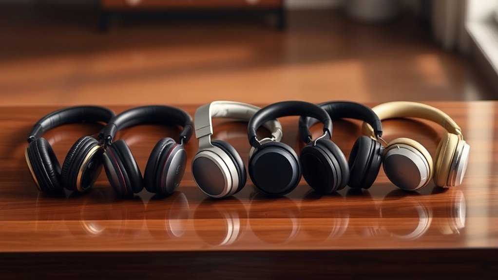 For audiophiles seeking a premium listening experience, the Bowers & Wilkins Px8 Over-Ear Wireless Headphones stand out with their industry-leading audio performance and luxurious design. The 40mm carbon drivers deliver rich bass and clear treble, making every note come alive. I love how customizable sound profiles let me tweak the EQ via the B&W Music App. Plus, the active noise cancellation effectively blocks distractions, and the dual microphones ensure crystal-clear calls. With soft Nappa leather and a lightweight build, they’re incredibly comfortable for long listening sessions. Priced at around $699, they offer exceptional value for serious music lovers.