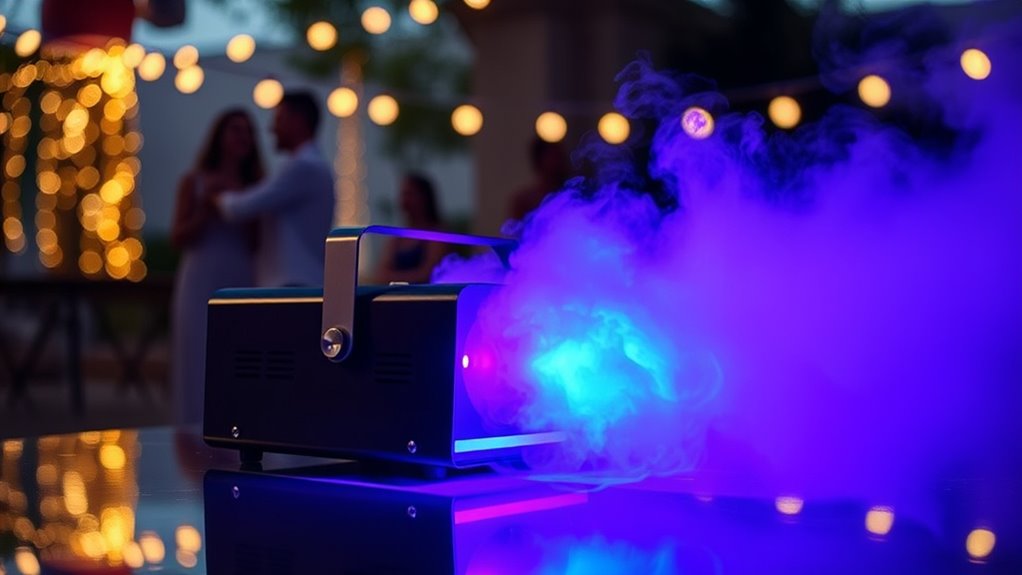 Most portable battery-powered fog machines support remote control via smartphone, making it super easy to operate from a distance. I love how I can adjust settings or turn it on and off without needing to be right next to it. Some models come with dedicated apps, while others work with universal remote controls. Just check the product specs to guarantee it’s compatible with your preferred device for seamless control.