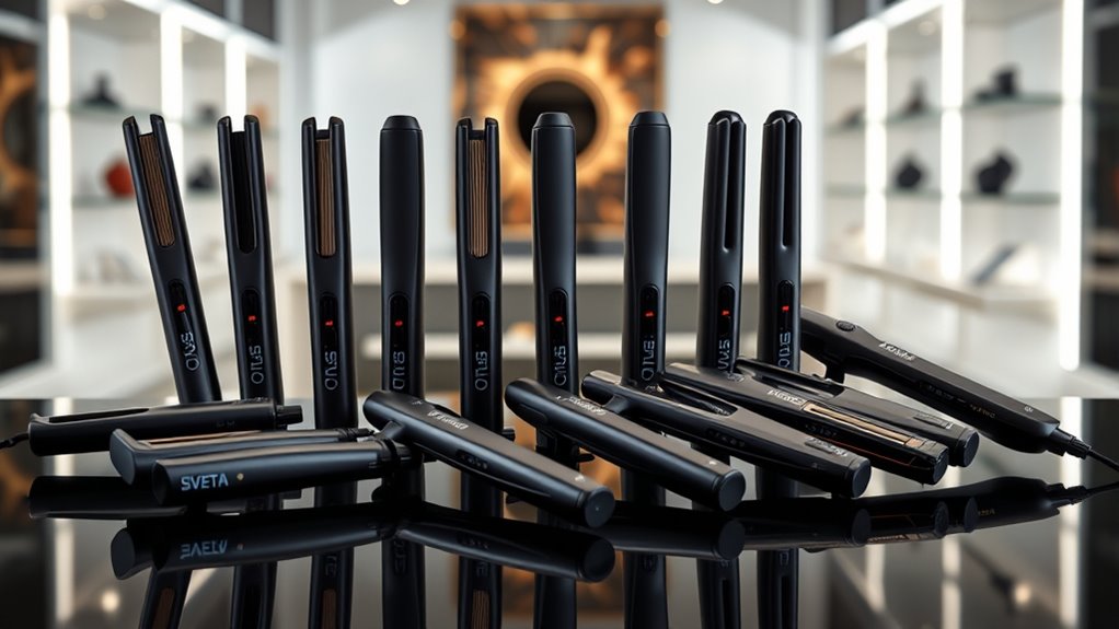 Pricing for premium hair straighteners varies widely, typically ranging from around $40 to over $200. Higher-priced models often feature advanced technology like infrared, ionic, or ceramic plates, which improve styling results and hair health. The best value comes from tools that strike a balance between affordability, durability, effective heat distribution, and versatile styling options. Investing in a more expensive straightener can offer longer-lasting performance and safety features such as auto shut-off and dual voltage, making it worthwhile in the long run. When evaluating price and value, I recommend considering the cost per use, warranty duration, and whether the features included help enhance styling efficiency and protect your hair. This approach guarantees you get the best bang for your buck.