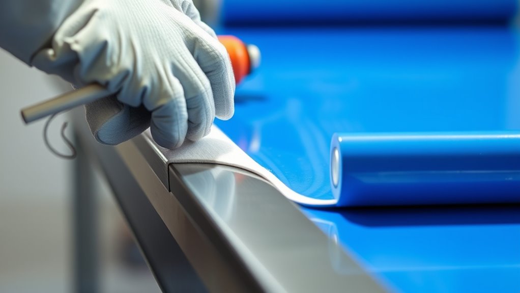 To guarantee your sealed and painted surfaces last longer, regular maintenance is essential. Start by inspecting for cracks or peeling paint, addressing issues promptly to preserve sealant longevity. Clean surfaces gently with mild soap and water, avoiding harsh chemicals that can degrade finishes. When necessary, perform painting prep by lightly sanding and removing loose paint before applying a fresh coat, which helps ensure a smooth, durable finish. Keep gutters and drainage clear to prevent water damage, and reseal gaps or cracks as they appear. Protect painted surfaces from excessive sun, moisture, and physical damage. Regularly checking for paint deterioration can help catch problems early before they worsen. Consistent upkeep preserves the integrity of your surfaces, extends their lifespan, and reduces the need for costly repairs. Proper maintenance is your best strategy for lasting durability.